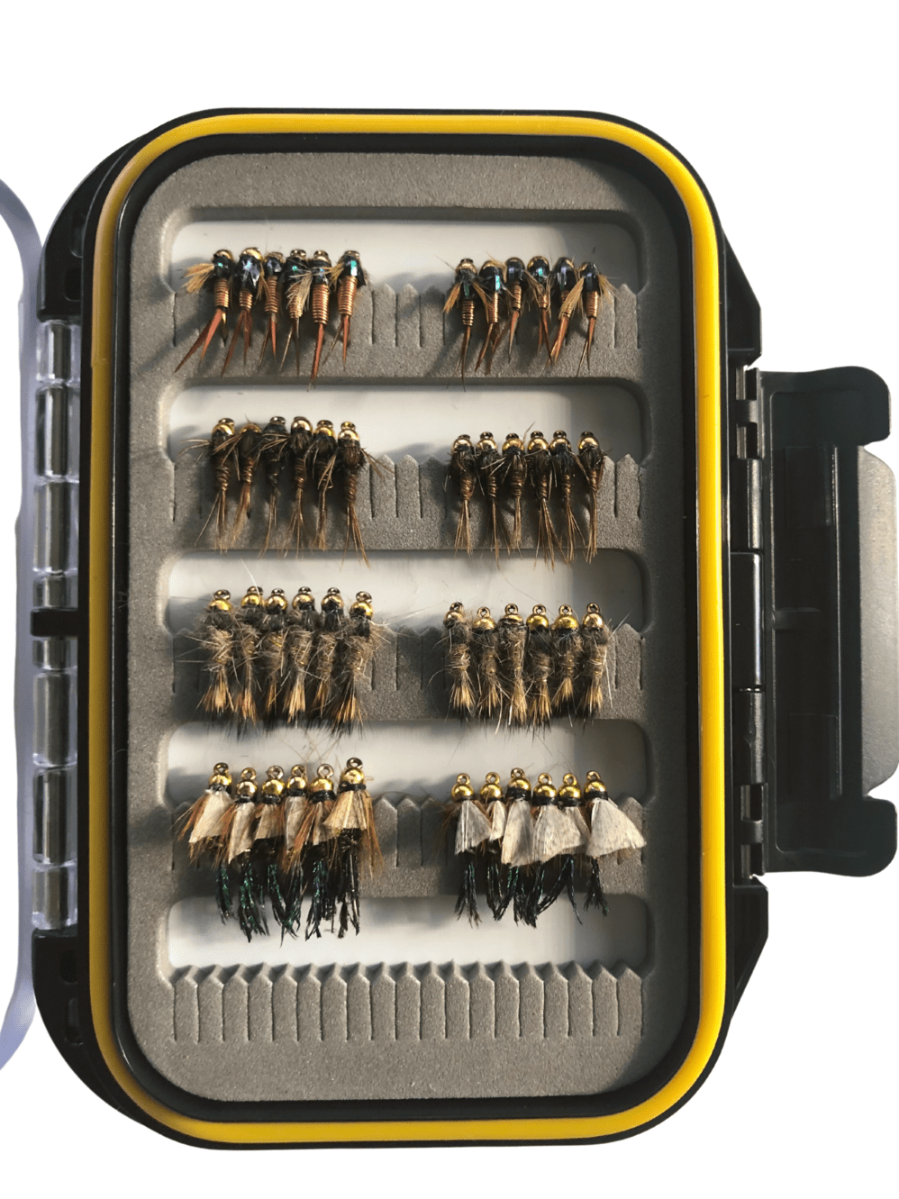 Our flies are crafted with high-quality materials for durability and longevity, ensuring they withstand multiple catches. The included waterproof fly box is compact yet spacious, keeping your flies organized and protected from the elements. Its secure latch and transparent design make it easy to quickly find the right fly for any situation.